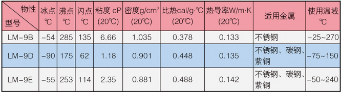 LM-9系列冰河冷媒由多官能团有机物改性而成,外观为浅色液体,不溶于水,可燃。具有粘度低、挥发性小、防锈性好、化学性质稳定等特点。